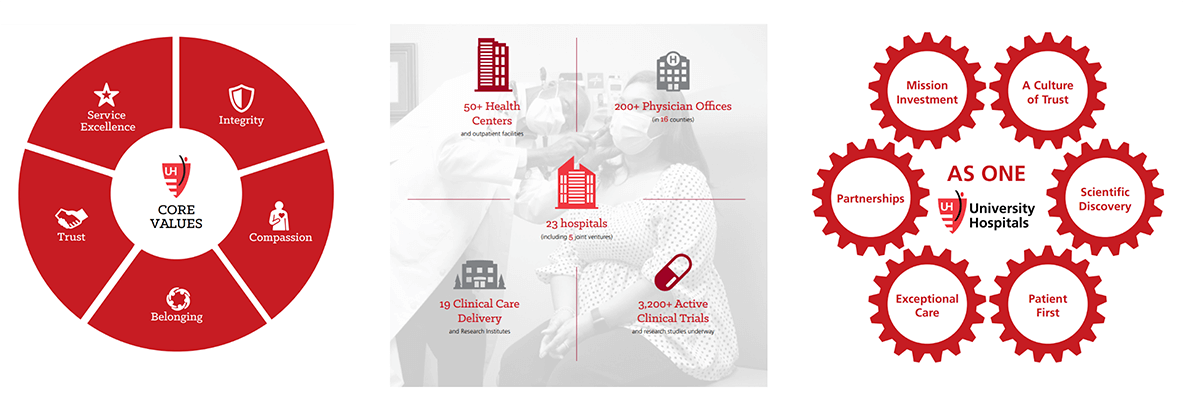 Founded in 1866, University Hospitals serves the needs of patients through an integrated network of 23 hospitals (including five joint ventures), more than 50 health centers and outpatient facilities, and over 200 physician offices in 16 counties throughout northern Ohio. UH is one of the largest employers in Northeast Ohio, with more than 30,000 employees.